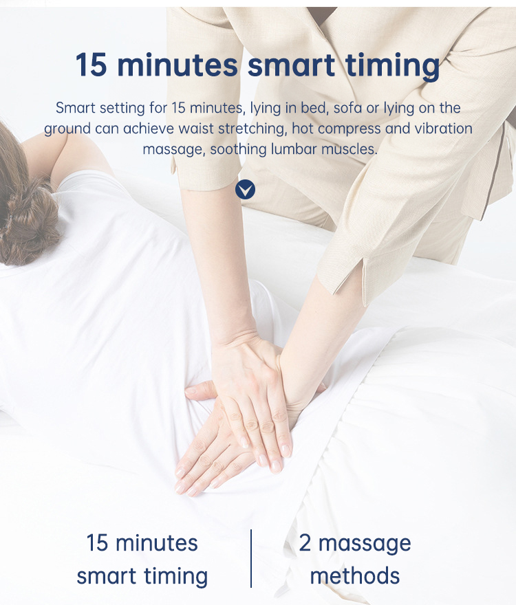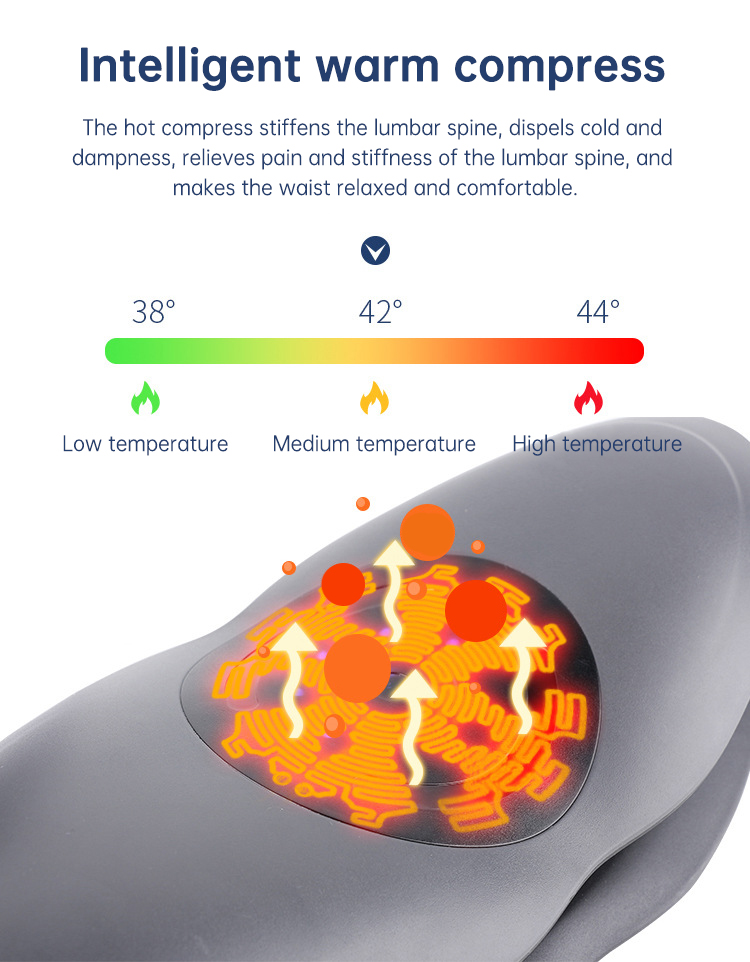 Intelligent vibration massage shakes the waist muscles through frequency changes. The band-type energy dispersion allows the infrared laser to penetrate deeply into the waist. The auxiliary board can be used on both soft and hard surfaces to increase tensile strength. The warm compress can dispel cold and dampness and relieve pain and stiffness in the lumbar spine.